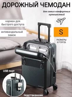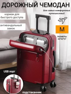 Чемодан на колесах M средний дорожный пластиковый с ручкой