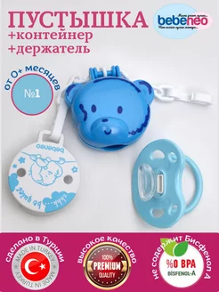 Набор для новорожденных пустышка+держатель +контейнер 0+ мес