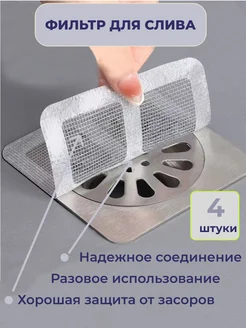 Самоклеящийся фильтр сетка для слива одноразовый, 4 шт