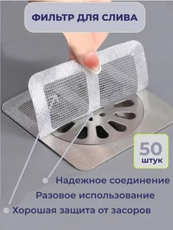 Самоклеящийся фильтр сетка для слива одноразовый, 50 шт