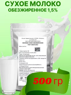 Молоко сухое обезжиренное 1,5% ГОСТ, 500 гр