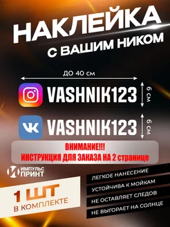 Наклейка на авто с Вашим ник Инстаграма ВК ТГ