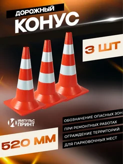 Конус дорожный БЕЗ утяжелителя 520 мм - 3 шт