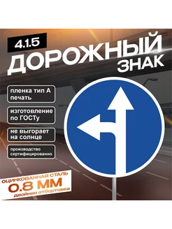 Дорожный знак 4.1.5 "Движение прямо или налево" плёнка А