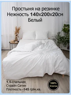 Простыня на резинке 140х200х20 см Белый Страйп Сатин