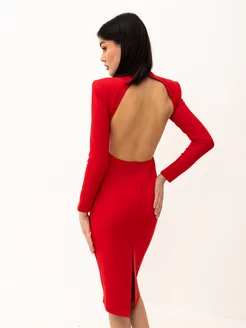 Платье женское праздничное красное с открытой спиной
