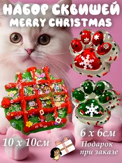 Игрушка антистресс новогодний табо сквиш лапка котика