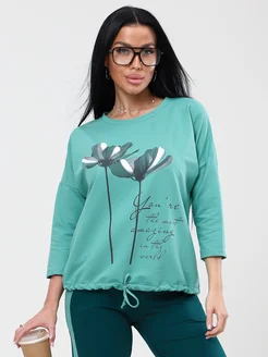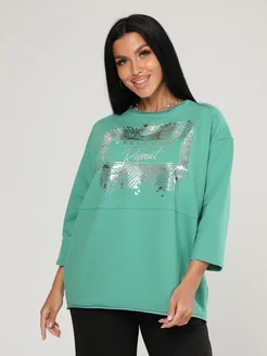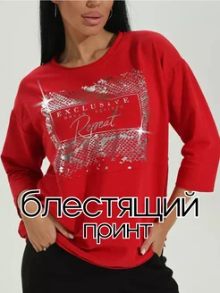 Кофта оверсайз большие размеры с принтом трикотажная теплая