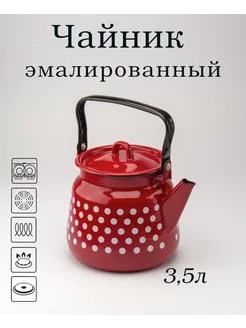 Чайник эмалированный 3,5л с петлей Белый горох Вишневый