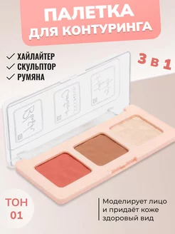 Хайлайтер, румяна, скульптор - палетка для контуринга 3 в 1