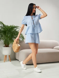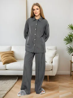 Домашний костюм пижама хлопковая с брюками и рубашкой