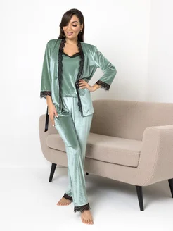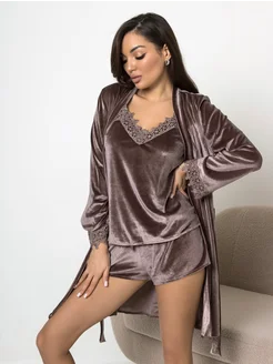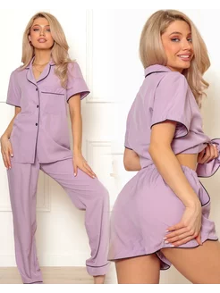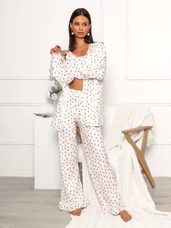 Домашний костюм пижама 3в1 рубчик лапша хлопок для высоких