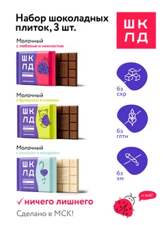 Ассорти шоколада 4 плитки новогодний набор без белого сахара