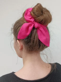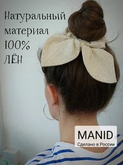 Резинка для волос льняная объемная с бантом солоха с ушками