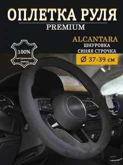 Оплетка на руль 37-39 см со шнуровкой алькантара, велюр