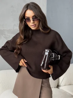 Укороченная кофта оверсайз джемпер с широкими рукавами