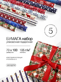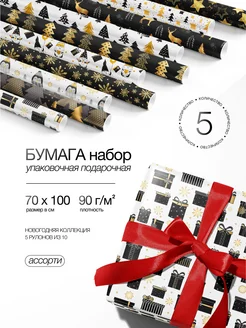 Упаковочная бумага новогодняя для подарков набор 5 шт