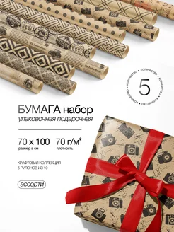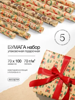Упаковочная бумага новогодняя для подарков набор 5 шт крафт