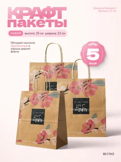 Пакет подарочный с днем рождения крафтовый 5 шт