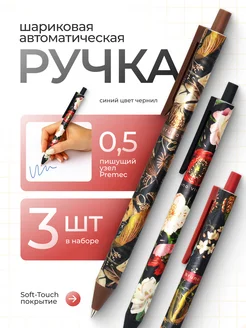 Ручка шариковая автоматическая с цветами набор 3 штуки