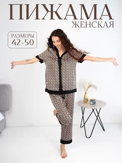 Пижама детская 7 в 1 для девочек шелковая с сердечками