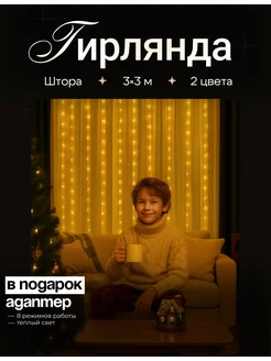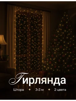 Гирлянда штора хвойная лапка 3*3 м теплый цвет