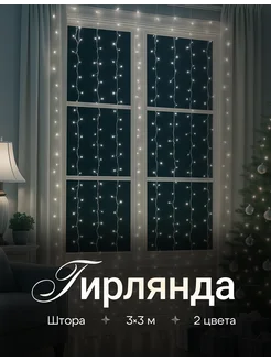 Гирлянда штора роса 3*3 м LED теплый свет на окно