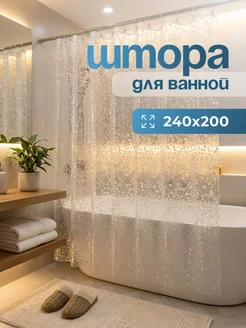 Штора для ванной 240х200 водоотталкивающая 3d на люверсах