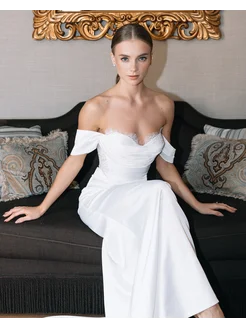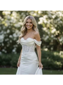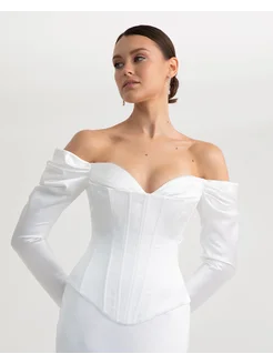 Белый корсет с кружевом и открытыми плечами — свадебный