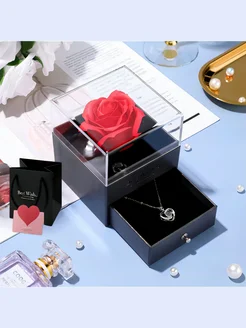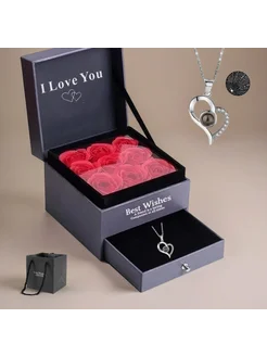 Подарочный набор для мамы в коробочке с кулоном и розой