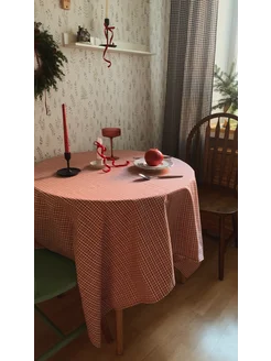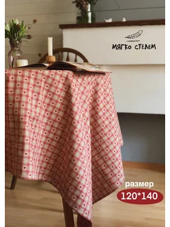 Скатерть Пестрядь Белая клетка на бордово-малиновом 120*150