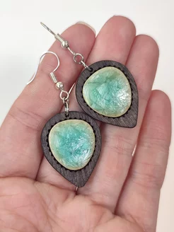 Серьги деревянные с фарфоровой вставкой