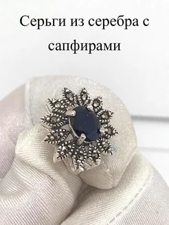 Серьги Серебро 925 Сапфир, марказит С1764С