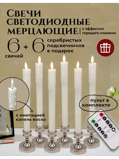 Свечи светодиодные с подсвечниками набор 6 шт мерцающие