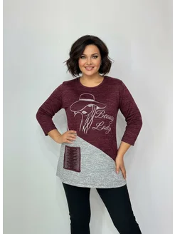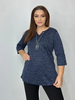 Кофта теплая больших размеров удлиненная со стразами