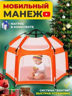 Манеж детский напольный складной с ковриком