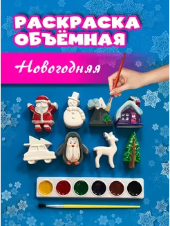 Новогодняя объемная раскраска 8 фигурок, кисть, краски