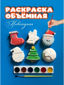 Новогодняя объемная раскраска 6 фигурок, кисточка, краски