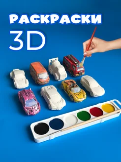 3D-раскраска авто и спец. техника 8 шт, кисточка, краски