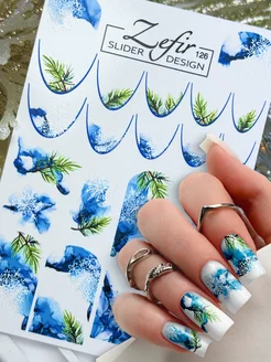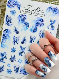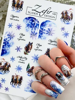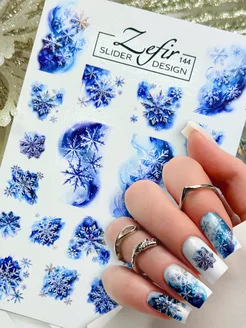 Наклейки для ногтей слайдеры новогодние снежинки 2026