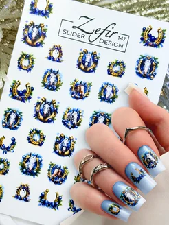 Наклейки для ногтей слайдеры новогодние лошади подковы 2026