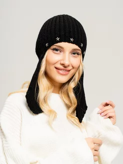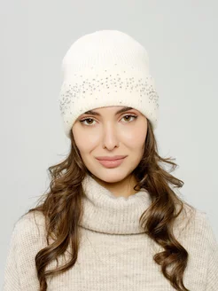 Шапка зимняя вязаная со стразами