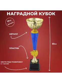 Наградной спортивный кубок на пластиковом постаменте (33 см)