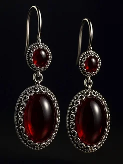 Серьги винтажные в стиле олд мани готика с красным камнем