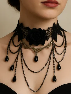 Колье винтажное многослойное ажурное цветок готика гетсби