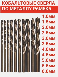 Набор сверл по металлу 1-6мм 0.5мм кобальтовых из 11 шт