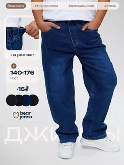 Джинсы багги широкие на резинке подростковые