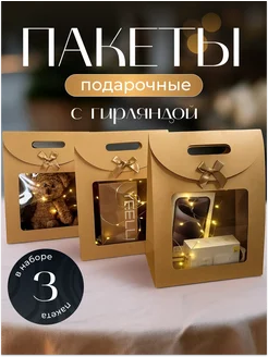 Крафт пакеты подарочные с окном 3шт