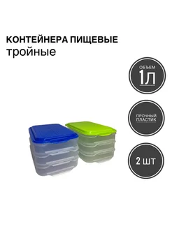 Ланч бокс 3 отсека салат синяя крышки 2 шт