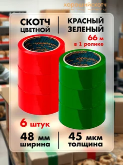 Цветной скотч, красный, 6 роликов в размере 48х66х45